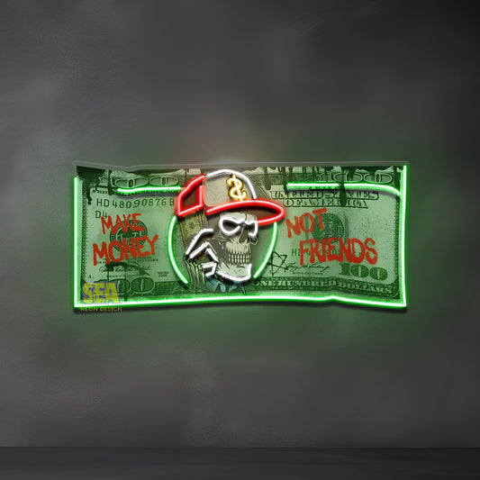 "Dollar Skull" Modern Neon Tabela | Para Kuru Kafa LED Neon Duvar Dekoru