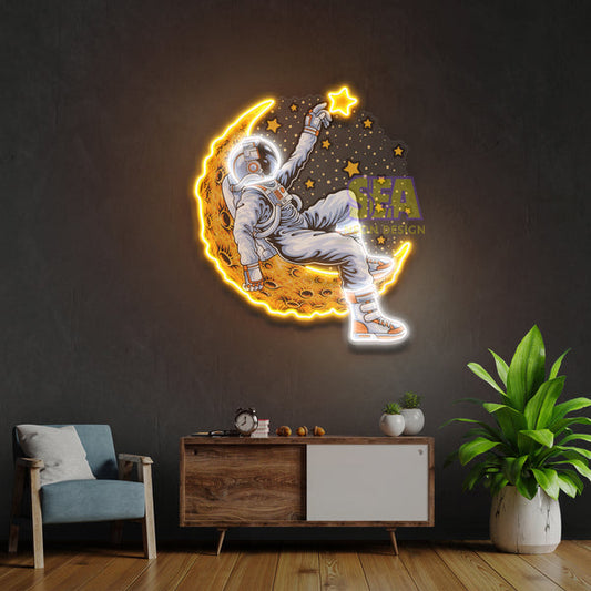 "Astronot Yıldız" Modern Neon Tabela | Uzay LED Neon Duvar Dekoru